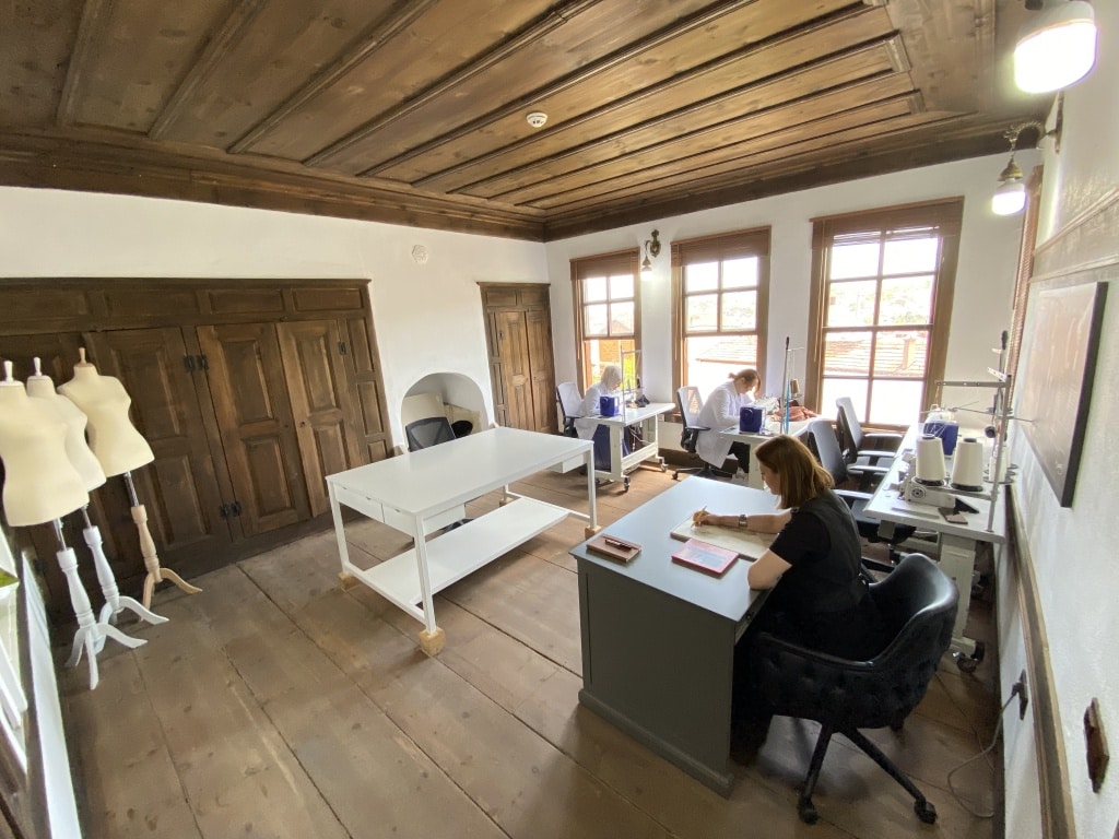 Bu atölyede, deneyimli ustalar, dokunan kumaşları zarif ve özgün tasarımlarla buluşturmaktadır. Her aşama, titizlikle yürütülmekte; kesimden dikime, tasarımdan son kontrole kadar her süreç, el işçiliğinin incelikleriyle şekillendirilmektedir. Geleneksel kıyafetlerin yanı sıra, modern modanın izlerini taşıyan projeler geliştirilmekte, böylece geçmişin zarafetini ve geleceğin yenilikçiliğini bir araya getirmek hedeflenmektedir.